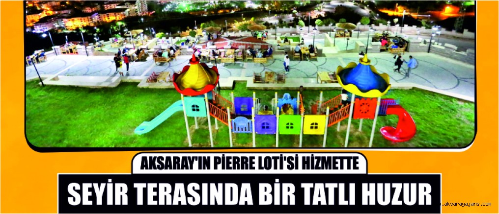 Artık Aksaraylılarda, İstanbul’un Eyüp İlçesinde Pierre Loti Tepesinden Haliç’i seyreder gibi Kılıçaslan Tepesinden Aksaray’ı seyredecek. Aksaray’ın Pierre Loti’sin de şimdiden özellikle akşamları tesis dolup taşmakta. Yoğun ilgiden arabaları bile koyacak yer bulunmamakta. Kılıçaslan tepesinde hizmete açılacak olan Seyir Terasından özellikle gece manzarası eşsiz güzelliği ile ayaklar altında. İstanbul’un Pierre Loti’si Aksaray’a taşınmış oldu. Aksaray’da huzur solumak istiyorsanız sizde mutlaka Seyir Terasını ziyaret edin. Haber: Dilek Eyüboğlu