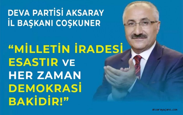 DEVA Partisi Aksaray İl Başkanı Necati Coşkuner, 15 Temmuz hain darbe girişiminin yıl dönümü nedeniyle yaptığı açıklamada her türlü bölücü ve milletin iradesini zedeleyici zihniyete karşı olduklarını söyledi.