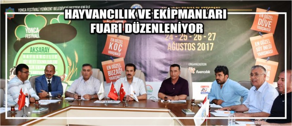 24- 27 Ağustos’ta yapılacak fuarın organizasyonu ile ilgili olarak yapılan toplantıya Gıda Tarım ve Hayvancılık İl Müdürü Bestami Zabun ile Tarım Platformunda yer alan Ticaret Borsası Başkanı Hamit Özkök, Veteriner Hekimler Odası Başkanı Önder Yıldız, Damızlık Sığır Yetiştiricileri Birliği Başkanı Bekir Kayan, Koyun- Keçi Yetiştiricileri Birliği Başkanı Mahmut Aktürk, Tarım Kooperatifleri Birliği Başkanı Cuma Kürkçü, Hayvancılık Kooperatifleri Birliği Başkanı, Yenikent Belediyesi temsilcisi Ömer Özakıllı ile Hayvancılık ve hayvancılık ekipmanlarını fuarını organize edecek olacak firma yetkilisi katıldı. Aksaray’da dört yıldır Tarım fuarının yapıldığının söyleyen Ticaret Borsası Başkanı Hamit Özkök, "Tarım ile birlikte hayvancılıkta ivme kazandı. Aksaray tarım platformu olarak kazanılan bu ivmeyi bölgemize ve ülkemize duyurmak amacıyla tarım fuarlarının ardından hayvancılık ve ekipmanlarını fuarını da düzenlemeye karar verdik" dedi.