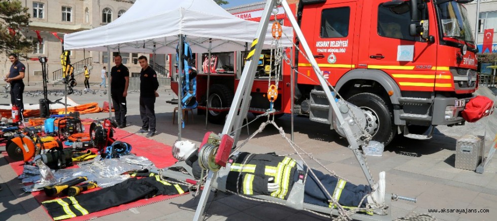 25 Eylül-1 Ekim İtfaiye Haftası dolayısıyla Aksaray Belediyesi İtfaiye Müdürlüğü tarafından 15 Temmuz Milli İrade Meydanında stant kurularak itfaiyenin araç ve gereçleri sergilendi.