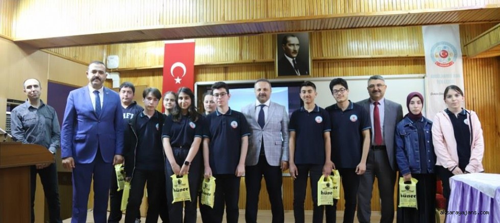 Konuşmasının devamında Aksaray Üniversitesi hakkında da bilgi veren Rektör Arıbaş, kampüs olanaklarının güçlü ve öğrenci odaklı olduğunun altını çizerek, şunları söyledi: “4 milyon metrekarelik bir alanda yer alan, yaklaşık 50 bin ağaca sahip yeşil ve ferah bir kampüsümüz var. Öğrencilerimize sosyal, kültürel ve sportif anlamda da birçok imkân sunuyoruz. Kampüsümüzde yarı olimpik yüzme havuzu, kapalı spor salonu, tenis kortları, basketbol ve futbol sahaları mevcut. Akademik yapılanmamız da sürekli gelişiyor. Bu yıl Bilgisayar ve Bilişim Bilimleri Fakültemizi kurduk, Diş Hekimliği Fakültemiz ilk öğrencilerini kabul etti. Tıp Fakültemiz bugüne kadar üç dönem mezun verdi. Fen-Edebiyat Fakültemiz ve Mühendislik Fakültemiz birçok akademik başarıya imza atıyor.” Etkinliğin sonunda Rektör Arıbaş, öğrencilerin sorularını cevapladı ve onlarla sohbet etti. Rektör Arıbaş, konuşmasının ardından Rektör Yardımcısı Prof. Dr. Erşan Sever ve Okul Müdürü Burak Solmaz ile birlikte Hadis Yarışması’nda dereceye giren öğrencilere ödüllerini takdim etti. Programın sonunda Okul Müdürü Burak Solmaz, Rektör Arıbaş’a günün anısına çiçek takdiminde bulundu.