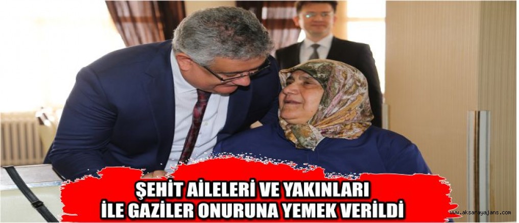 Polisevinde Şehit Aileleri ve Gaziler onuruna verilen yemek programında şehit yakınları ile görüşerek bir süre sohbet eden Vali Pekmez yakından ilgilenildiği şehit aileleri ve yakınlarına her zaman yanlarında olduklarını söyledi. Kuran-ı Kerim tilavetiyle başlayan programda ilahi ve marşlar seslendirildi. Emniyet Müdürü Ali Karabağ burada yaptığı konuşmasında şehit ailelerine seslenerek: “Sizlerin evlatları bu vatana sahip çıktılar. Vatanın bekası ve bütünlüğü için canlarını seve seve feda ettiler. Şehitlerimizin sizleri bize emanet ettiklerinin bilincindeyiz. Her zaman sizlerin yanında ve destekçiniz olduğumuzu da unutmamanızı istirham ediyoruz. Vatana yaptıkları hizmetin borcunu asla ödeyemeyeceğimiz şehitlerimi rahmetle anıyoruz’ dedi. TRT Ankara Radyosu sanatçısı Mesut Şimşek ve ekibinin ilahi ve marşlar seslendirdiği programa; AK Parti Gurup Başkan Vekili İlknur İnceöz, Milletvekili Mustafa Serdengeçti, Belediye Başkanı Haluk Şahin Yazgı, Cumhuriyet Başsavcısı Ramazan Akın, Adli Yargı Adalet Komisyonu Başkanı Seyfullah Sarıyıldız, İdare Mahkemesi Başkanı Osman Erkan, Emniyet Müdürü Ali Karabağ, Jandarma Komutanı Albay Gazi Demir, davetliler ile şehit aileleri gaziler ve yakınları katıldı. Haber: Yavuz Akkan