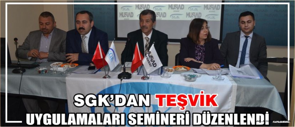 Sosyal Güvenlik İl Müdürü Bilal AKGÜN, İl Müdür Yardımcısı Sebahattin AKBAL, İl Müdürlüğü Şefleri ile Aksaray MÜSİAD Şubesi üyelerine “Teşvik uygulamaları ve Çalışma Hayatında Milli Seferberlik” kapsamında bilgilendirme semineri verildi. MÜSİAD Şube Başkanı Eyup Dağdaş “Teşvik uygulamaları ve Çalışma Hayatında Milli Seferberlik” kapsamında yapılan seminerin üyelerimizin için verimli olduğu düşüncesindeyim. Üyelere bu imkânı tanıyan başta SGK İl Müdürü Bilal Akgün’e ve kurum çalışanlarına teşekkür ediyorum” dedi. Seminer sonra MÜSİAD Şube Başkanı Eyup Dağdaş tarafından SGK İl Müdürü Bilal Akgün’e plaket takdim etti. Seminere, SGK İl Müdürü Bilal Akgün, SGK İl Müdür Yardınmcısı Sebahattin AKBAL, İl Müdürlüğü Servis Şefleri, MÜSİAD Şube Başkanı Eyup DAĞDAŞ ve üyeleri katıldı. Haber Merkezi
