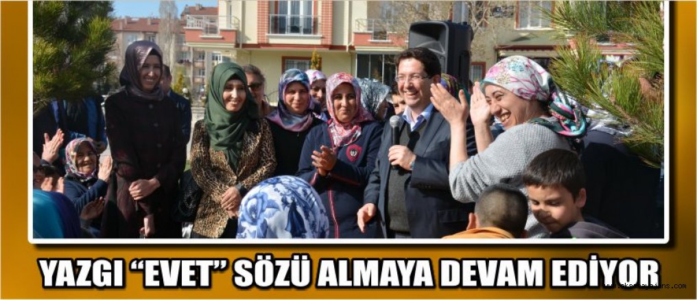 Birçok noktada yaptığımız çalışmalar hizmetlerimiz ayrı ayrı devam ediyor. Sizler için, gençlerimiz için, emeklilerimiz için yapmış ve yapacağımız çok projemiz, çalışmalarımız var. Sizlere hizmet noktasında Aksaray için güçlü Türkiye için bizleri yalnız bırakmayıp EVET diyeceğinize canı gönülden inanıyorum ”dedi. Büyük Bölcek ve Pamucak mahalle sakinleri “Bizim başka bir vatanımız yok. Türkiye’ye sahip çıkmak zorundayız. Yakın zamanda da dış güçlerin yaptığı oyunları gördük. Bunlara seyirci kalmayacağız. Referandumda oyumuz EVET olacak” diyerek Başkan Yazgıya söz verdiler. Haber Merkezi